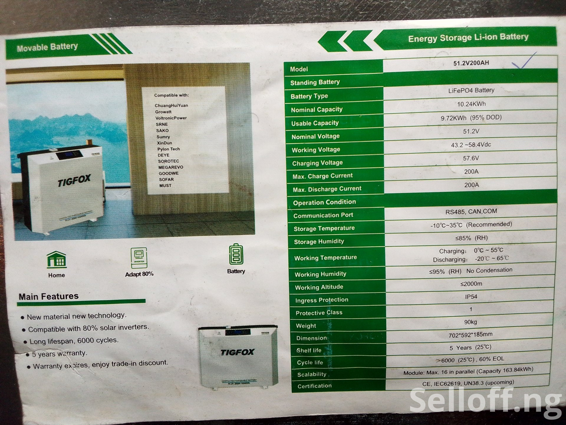 Introducing our 15.36kWh TIGFOX LiFePO₄ movable battery — a high-performance energy storage solution built for homes and apartments. it's compatible with 98% of solar inverters and delivers safe, efficient, and long-lasting power. Backed by a 5-year warranty , it's your smart choice for uninterrupted energy (smart BMS, Grade A cell etc).
