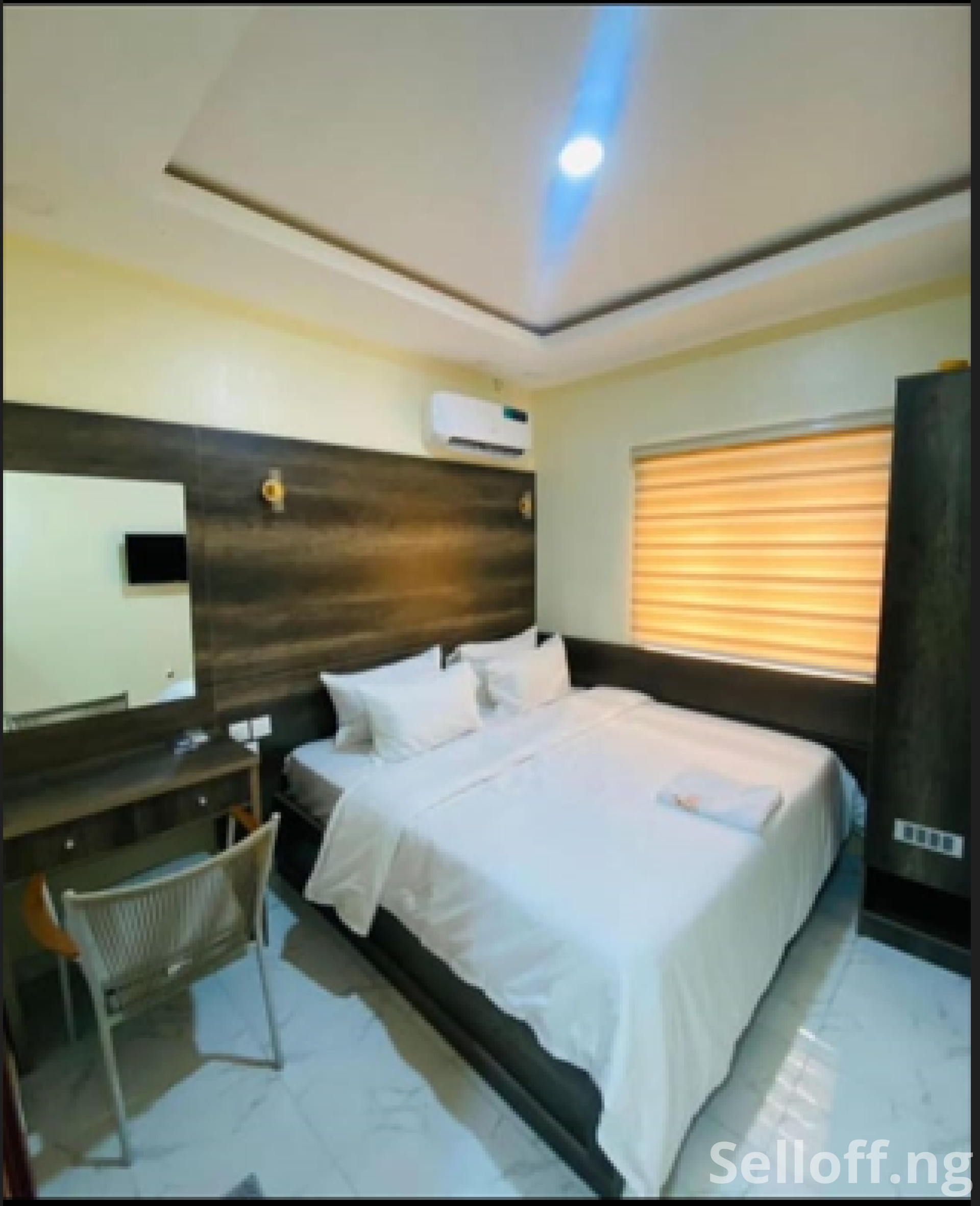 A newly built 2 bedroom flat with modern facilities; pop & tiles all through, water heater, MDF wardrobe and kitchen cabinets, paved compound, ensuite, tared road etc.