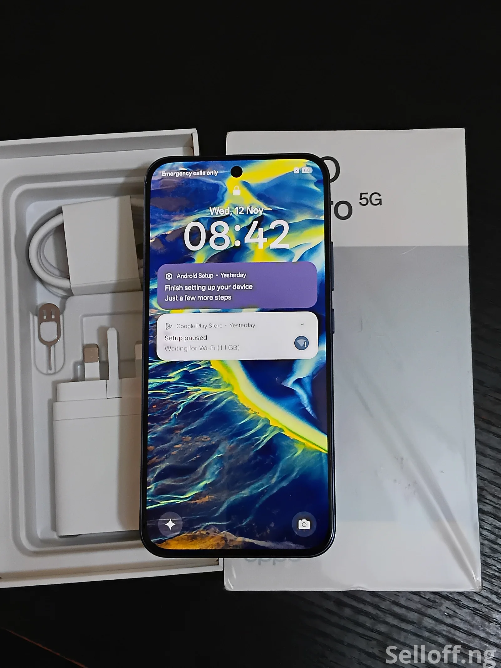 The phone is brand new(unboxed) with everything intact. Never used. The color is Stellar Blue. Storage- RAM- 8GB ROM- 256GB. Battery- 7000mAh.