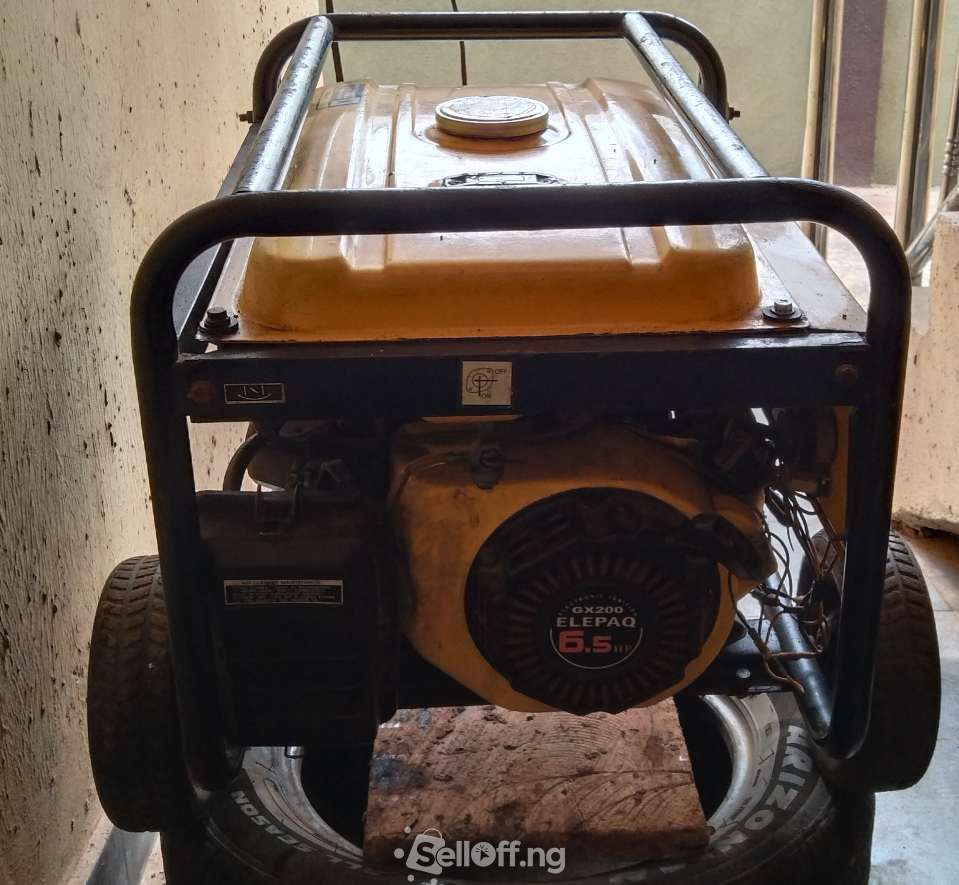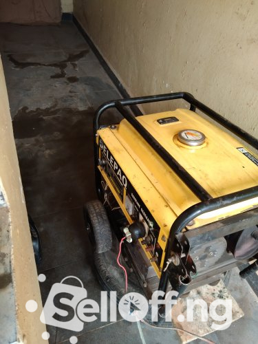 This is a 3.8kva Elepaq generator that is still in a good condition. I use it for for freezer at home and it can pump water. I'm selling it to settle urgent need. This is better than new one because I got a good coil for it with the help of a generator expert and a new battery. It has key starter, manual start and tyres. Location is after Sango-ota, after Joju.