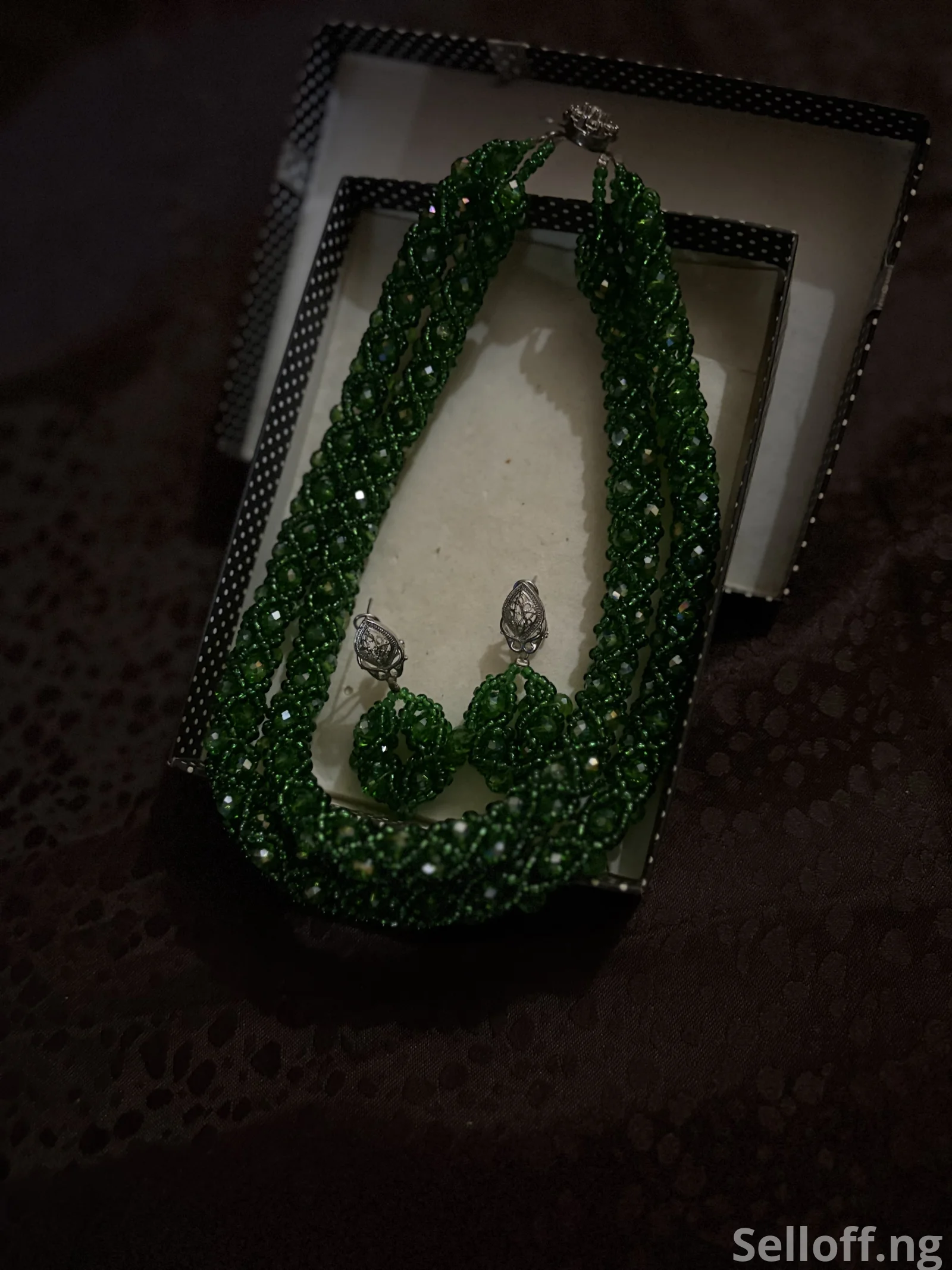 Jewerly set is made with love by hand, earrings are clip-ons paired with a two layered necklace.