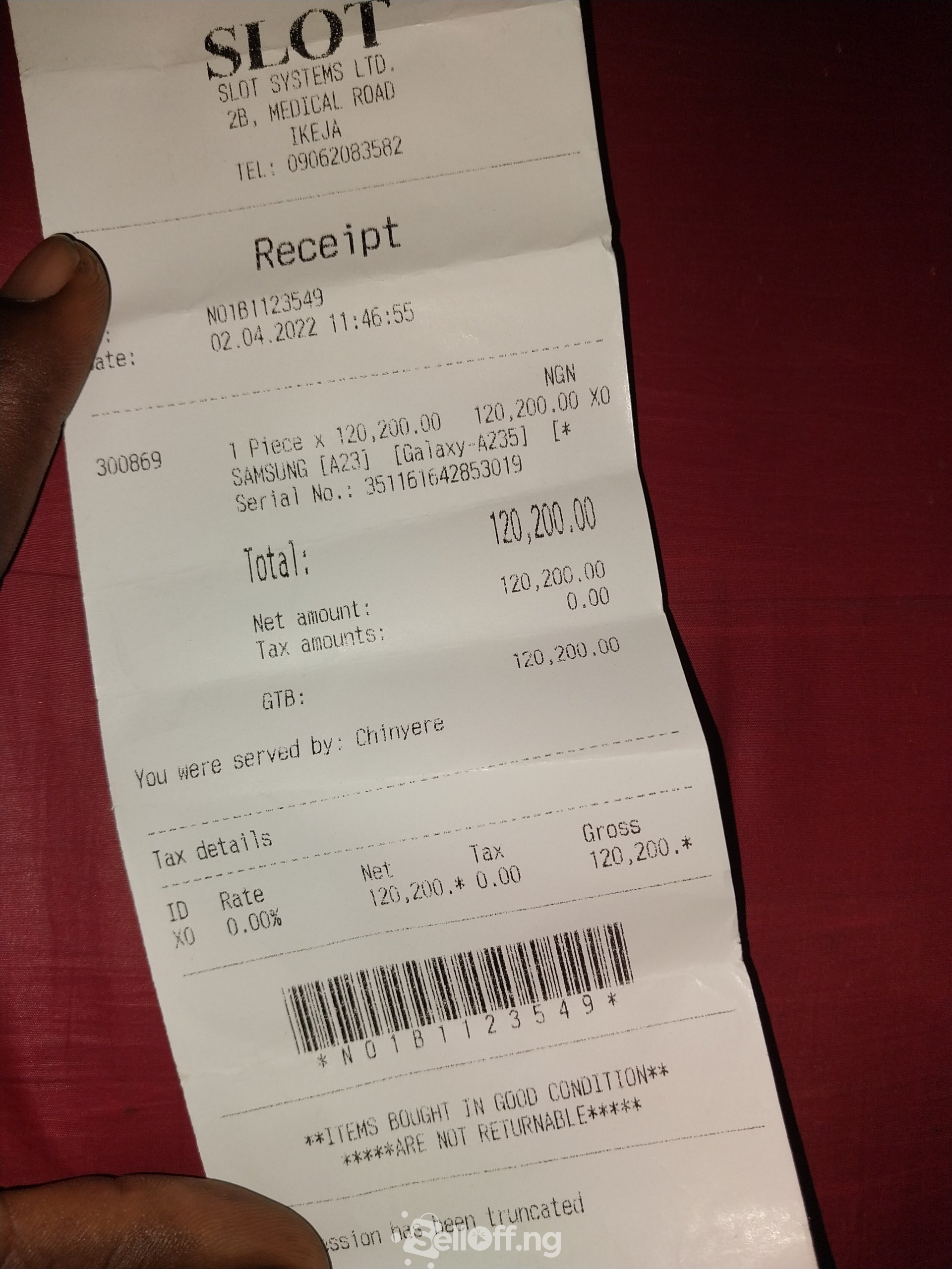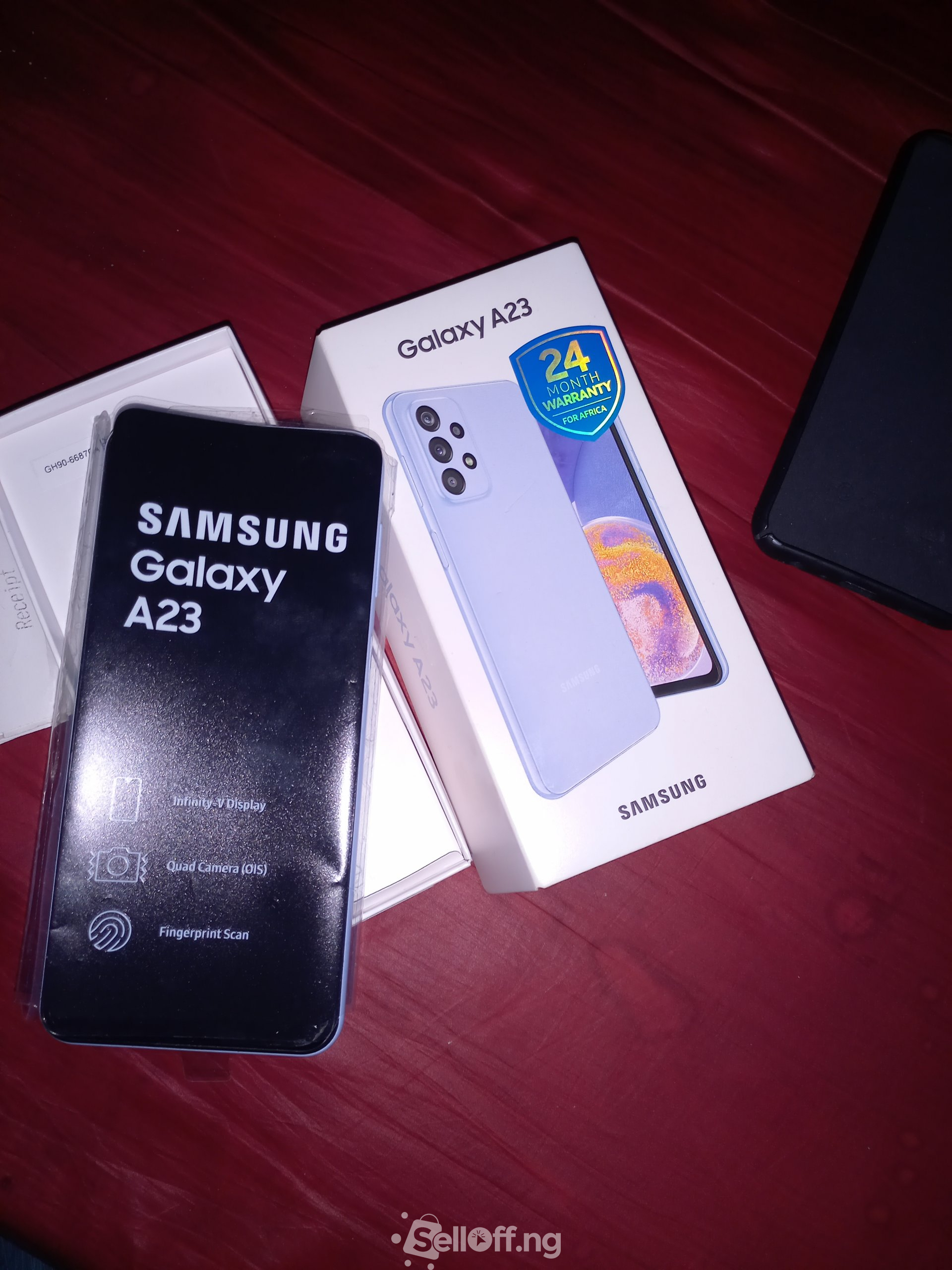 Two weeks old samsung Galaxy A23 with receipt, pack and samsung two years warranty. Its a brand new phone from slot.ng, so expect everything that comes with the box.
